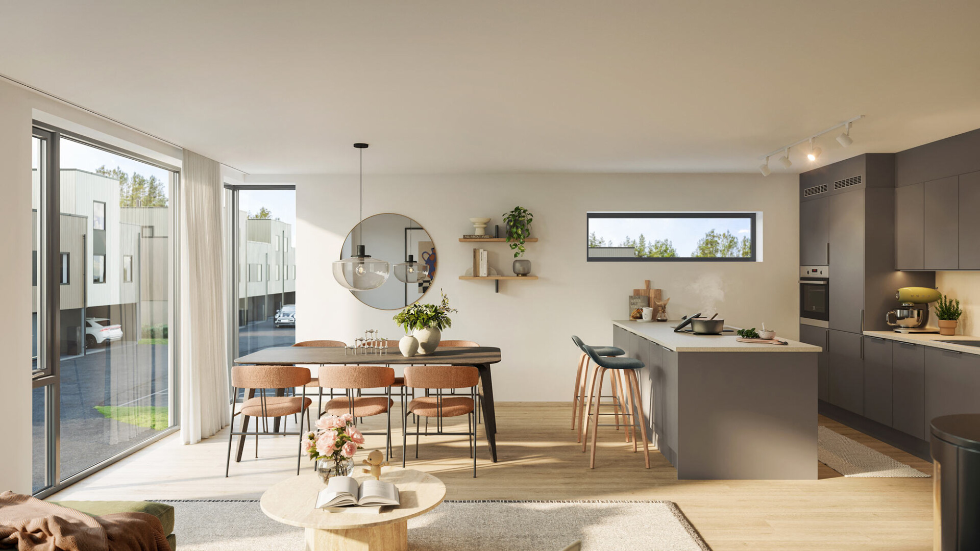 De moderne og innholdsrike rekkehusene er på 106 eller 136 kvm. Boligtype D består av 3 soverom, 2 bad, vaskerom, walk-through garderobe og en åpen stue- og kjøkkenløsning over to plan. Mens boligtype C rommer et ekstra soverom, loftstue og takterrasse i tredje etasje. Eget uteområde med terrasse og hage gir rom for late sommerdager ved grillen.