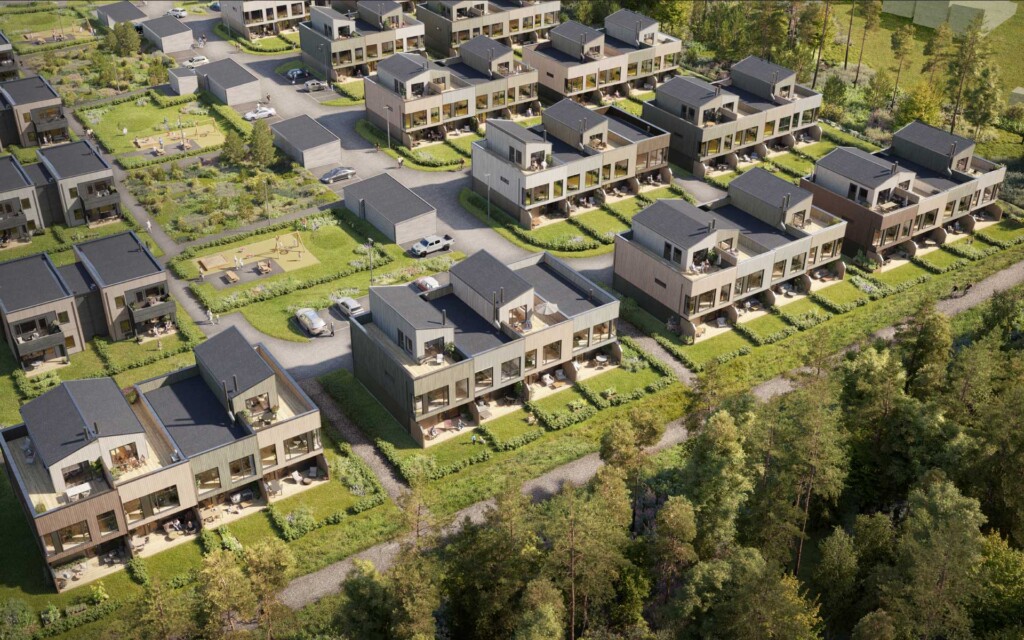 Arealsmarte og moderne rekkehus på 106 eller 136 kvm. Perfekt for barne-familier som trives med å ha både turstier, skiløyper og tretoppsus rett utenfor døren.